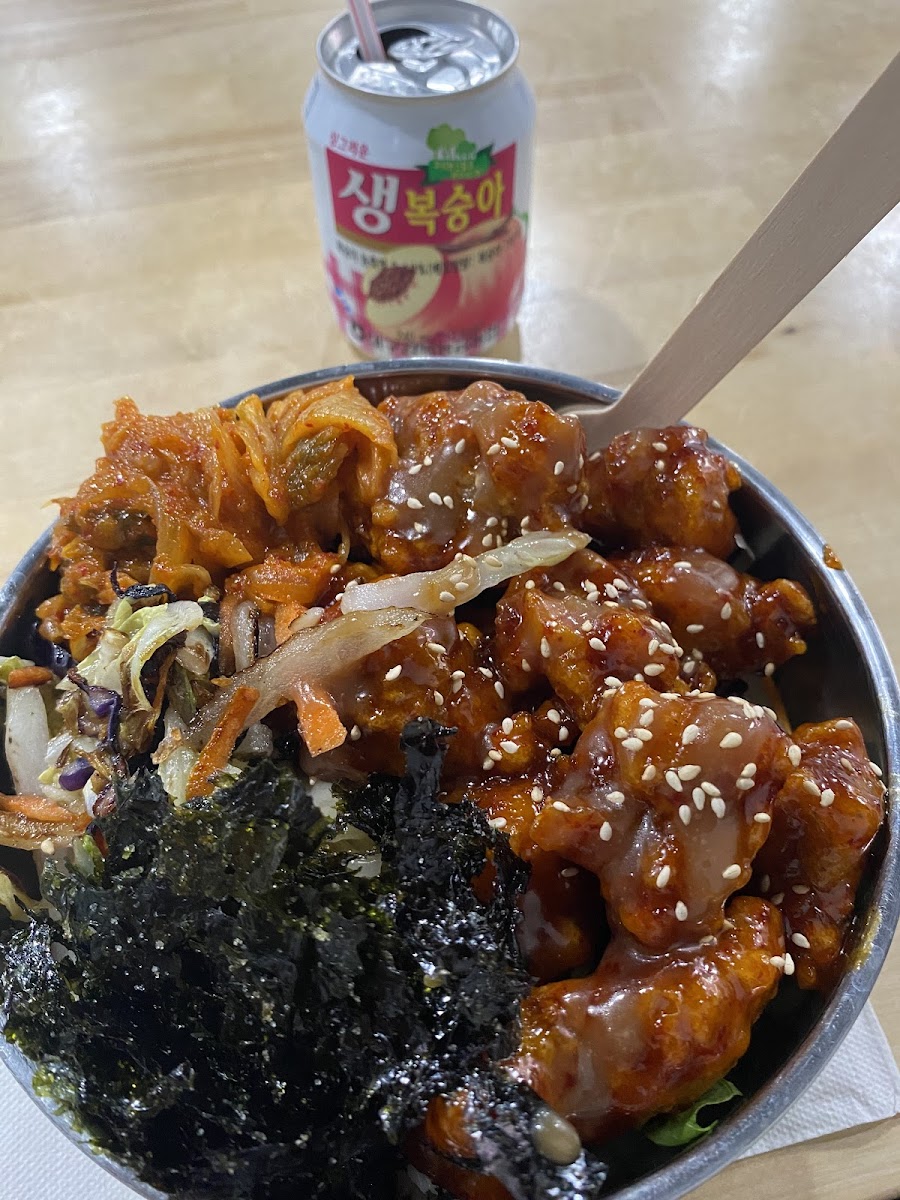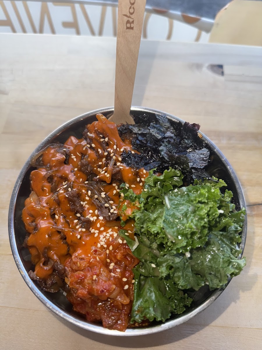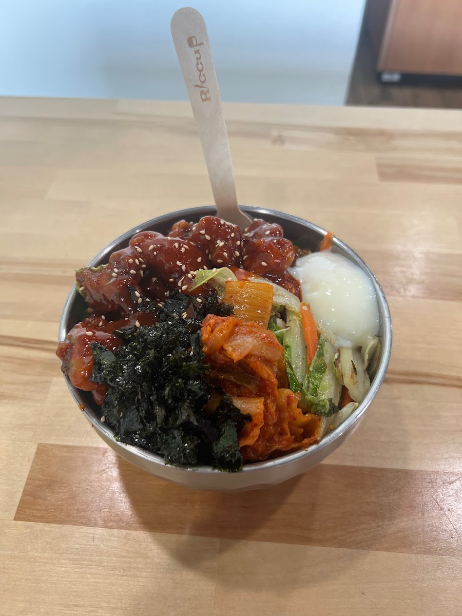 Super delicious spot for a filling meal. If you like Korean flavors, this is a fantastic spot. I love the build your own bowl style of serving. I got the glass noodles topped with pickled radish, kimchi, and egg with bulgogi meat. Each of the components of the bowl tasted super fresh and were packed with flavor. Additionally, the serving is large and I was able to take some leftovers home, always a plus! The ambiance is fantastic, very quaint with comfortable seating. I would definitely return to try a new bowl combo. This is a great spot to come with a friend, would recommend!