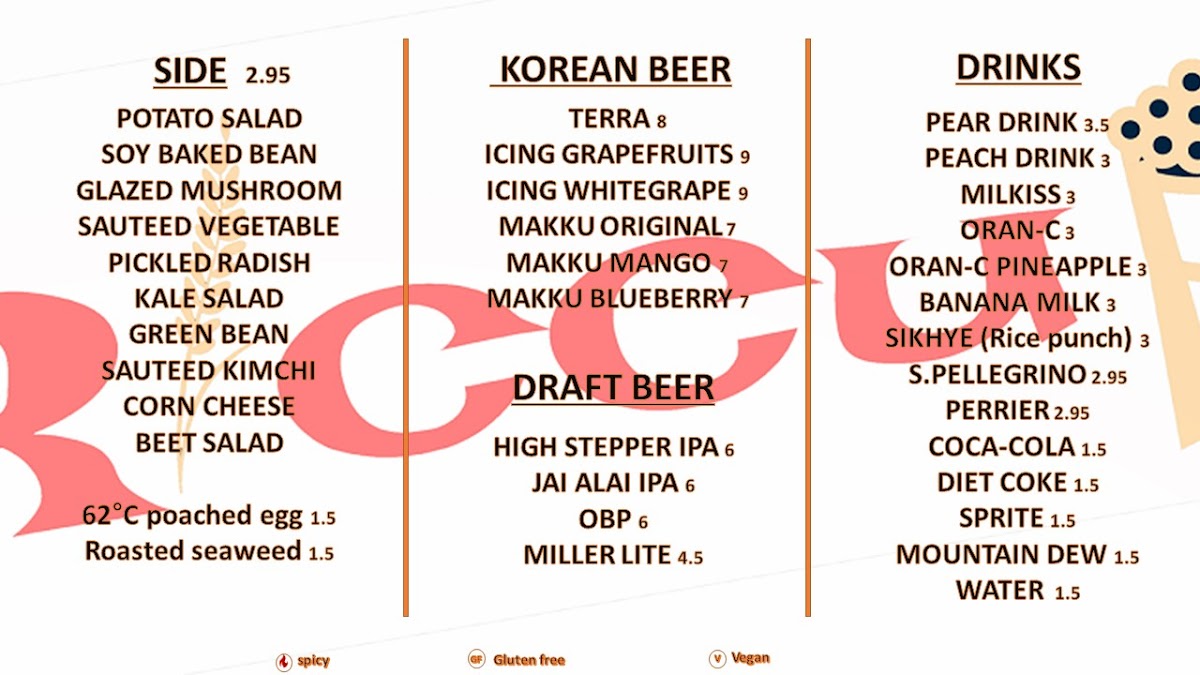 RICCUP offers a thoughtfully crafted menu that focuses on satisfying Korean flavors presented in a casual, approachable way. The selection combines comforting bowls, savory sides, and refreshing drinks, making it an inviting spot for a relaxed lunch or a laid-back dinner.